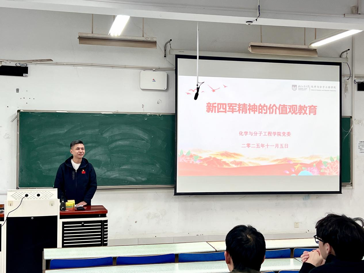 学院党委开展了化学青年、入党信仰、时代形势、新四军精神等系列价值观教育。此次讲座不仅加深了学院学生党员对新四军精神的理解,也进一步激发了大家继承和发扬革命传统的热情。化学学院全体学生党员认真聆听,积极互动,纷纷表示要将新四军的廉洁精神内化于心、外化于行,为成为一名优秀的共产党员而不懈奋斗。