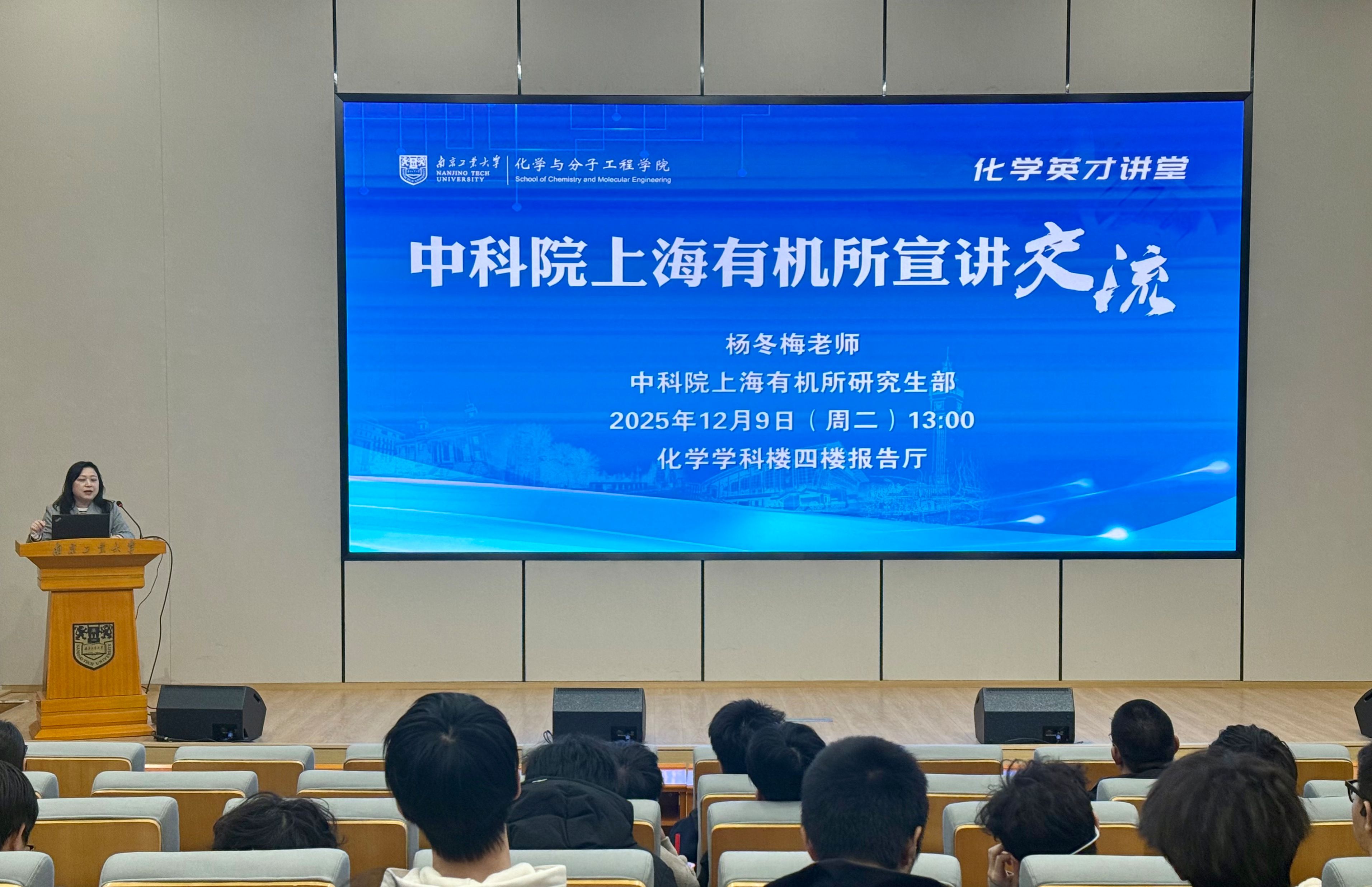 12月9日,化学英才讲堂暨中国科学院上海有机化学研究所宣讲交流会在化学学科楼四楼报告厅举办。上海有机化学研究所研究生部杨冬梅老师做宣讲报告。化学英才班22-25级全体学生参加会议,会议由英才班专业负责人尹晓爽主任主持。