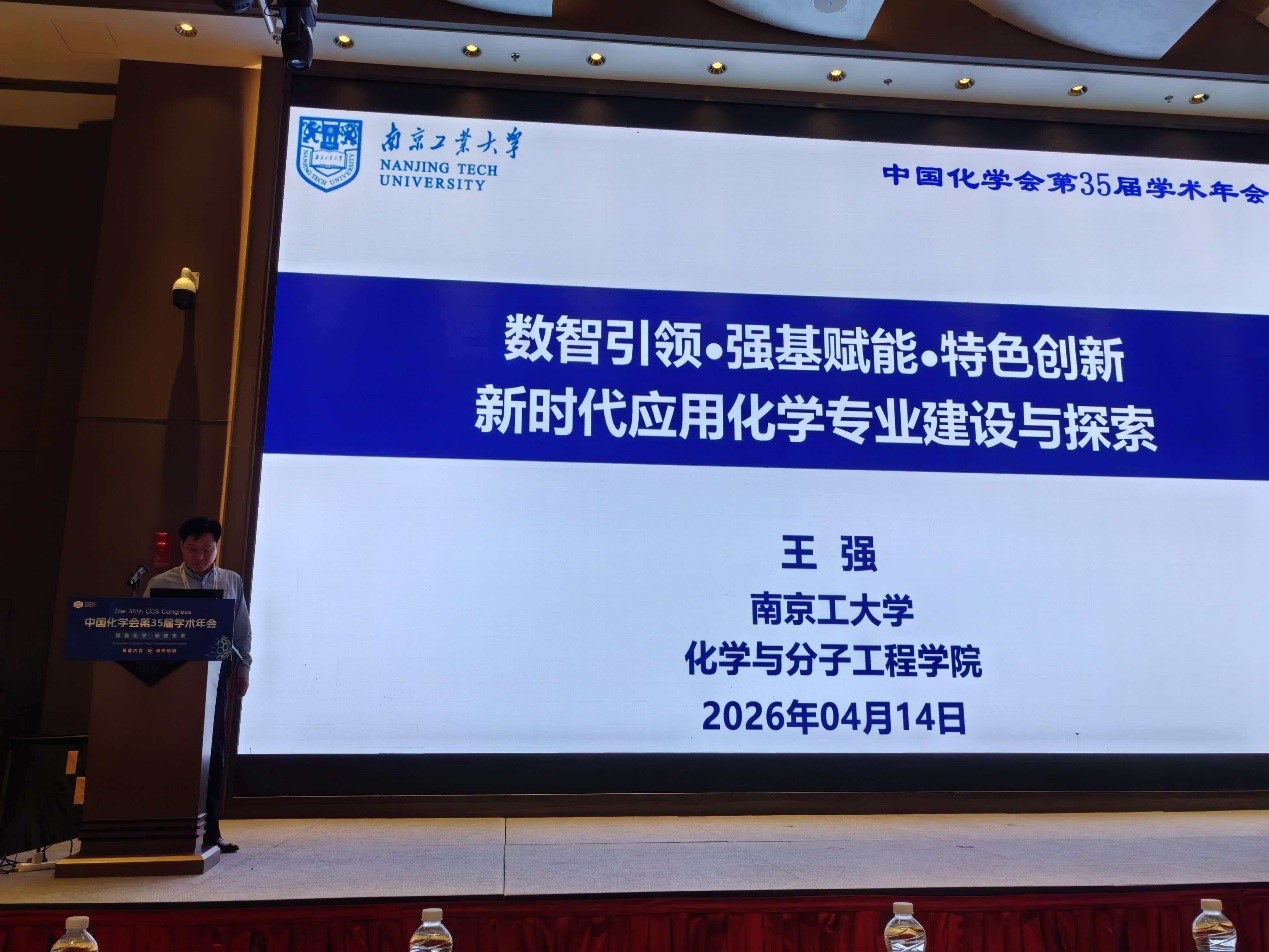 我院霍峰蔚院长、应用化学系王强主任率队参会,积极参与学术交流与专业建设研讨。会上,王强教授作题为《数智引领・强基赋能・特色创新 — 新时代应用化学专业建设与探索》的特邀报告,系统介绍了南京工业大学化学与分子工程学院应用化学专业建设成果。报告聚焦省级“化学拔尖学生培养基地”2.0 建设,围绕高素质复合型人才培养目标,详细阐述学院“数智引领、强基赋能、产教协同”专业建设新模式,全面展示依托“化学 + AI”跨学科培养体系,在水化学水处理、精细有机合成、工业分析、界面与催化四大特色方向取得的育人成效。