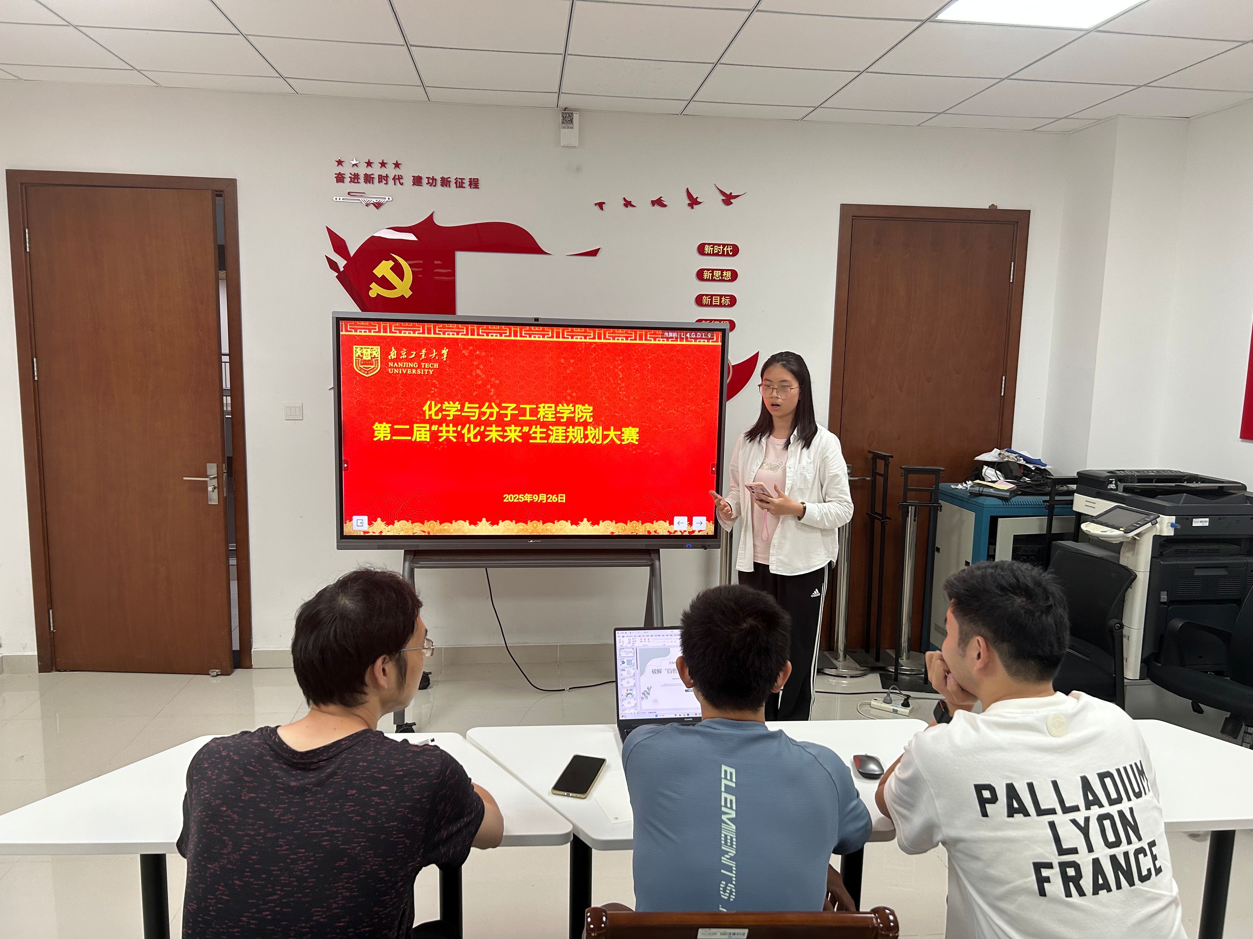 为进一步加强大学生涯教育和就业指导教育,增强学生生涯规划意识,促进我院学生高质量充分就业,根据学校的统一安排,9月26日,学院在化学学科楼A410举办第二届“共‘化’未来”生涯规划大赛,学院学生工作办公室老师担任评委。