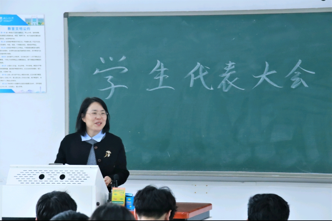 校学生会代表王培懿同学对学院第九次学代会的召开表示祝贺,并高度评价了学院学生会在科技创新、志愿服务、学风建设等方面取得的成效。她希望今后校院两级学生会能进一步加强联动,共同推动学校学生工作实现新发展。