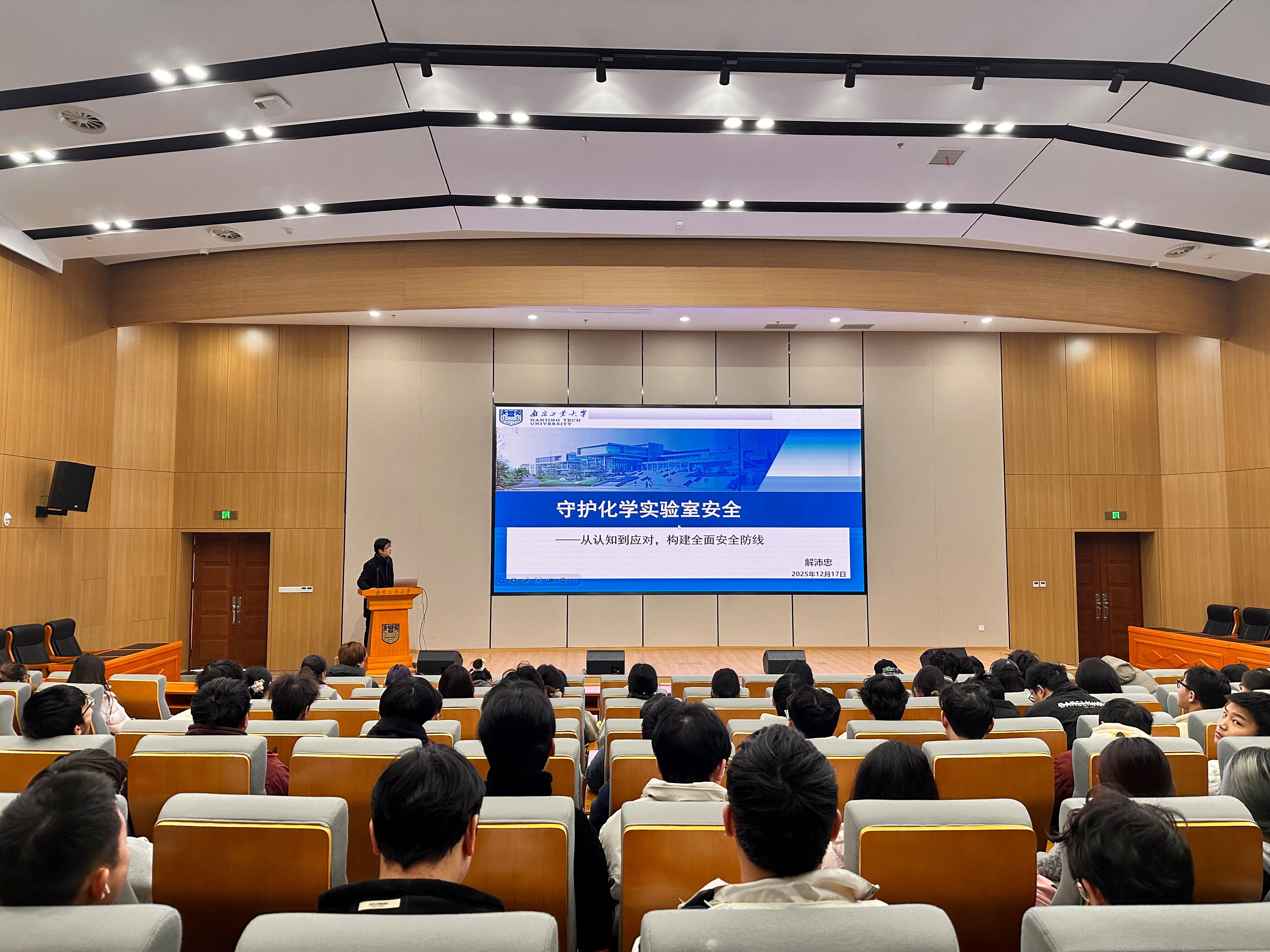 为加强学生实验安全教育,明确学业发展方向,11月17日上午,学院面向2024级本科生举行实验安全教育暨学期年级大会,会议由辅导员方进主持,邀请学院解沛忠教授作专题化学实验安全教育,全体2024级本科生参加。