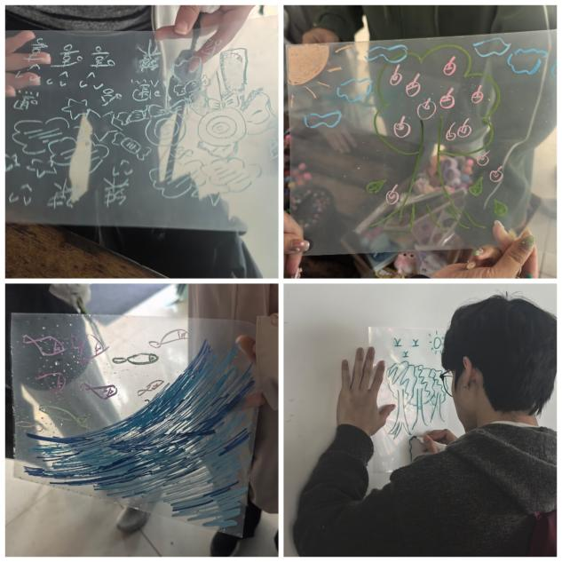 活动现场,氛围温馨而松弛,摒弃了说教式的引导模式,让同学们在慢节奏、无压力的动手过程中卸下防备。PVC材质的透明画板成为大家释放情绪的“空白画布”,同学们随心勾勒或肆意晕染,将学业焦虑的烦躁、日常内耗的纠结、社交拘谨的忐忑等负面情绪,转化为笔下的色彩与线条;也有同学将对未来的期许、对生活的感悟、与自我的和解寄语融入创作之中。