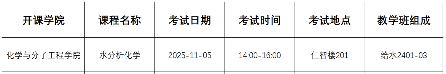 2025-2026(1)《水分析化学》期末考试通知